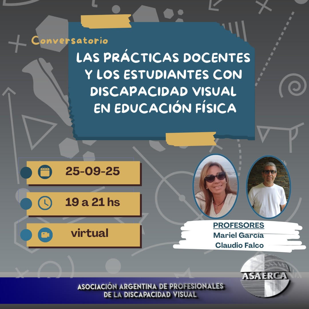 Desde ASAERCA convocamos al Conversatorio: Actividades turísticas para Personas con Discapacidad Visual Modalidad: Virtual – Plataforma ZOOM Disertante: Lic. en Turismo Graciela Fabiana Tizón Objetivo: Compartir experiencias sobre organización y